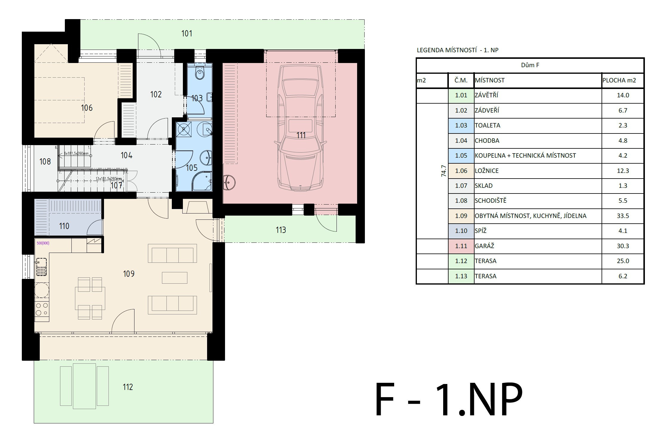Kvalitu použitých materiálů podtrhují dřevohliníková okna a dveře. Prvky zámečnické z žárově zinkované oceli mají finální povrchovou úpravu v odstínech RAL a pro prvky klempířské bude použitý hliníkový plech.