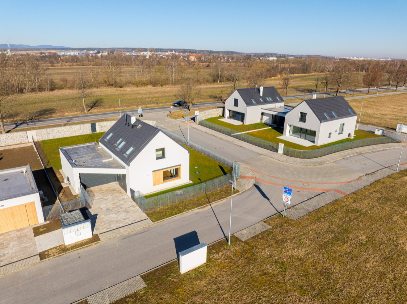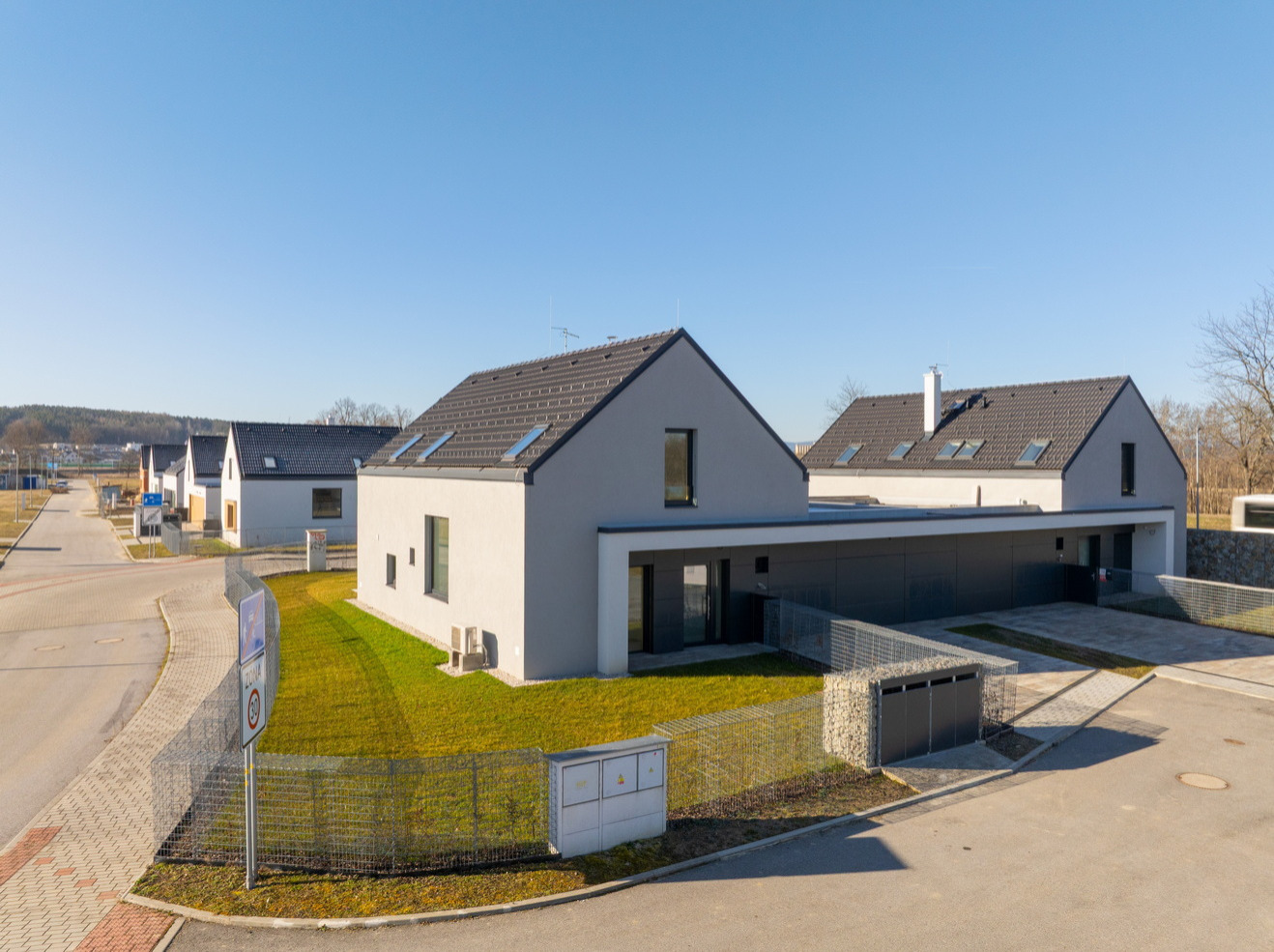 Domy budou zároveň osazeny plynovou přípojkou s možností potenciálního připojení v budoucnosti dle preferencí uživatele.