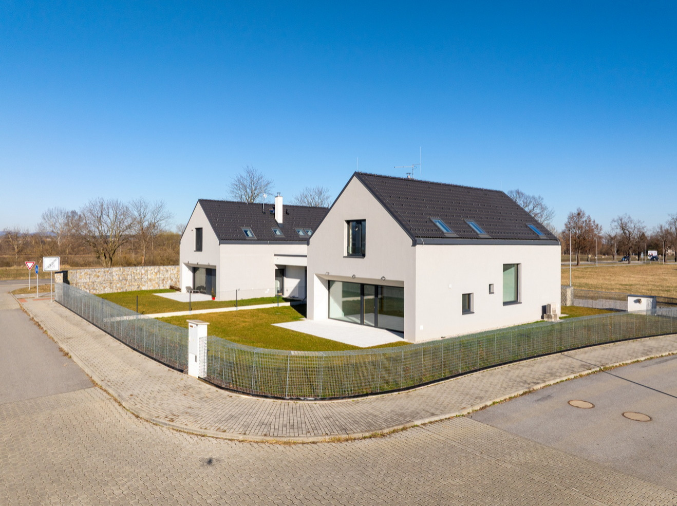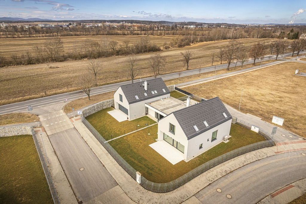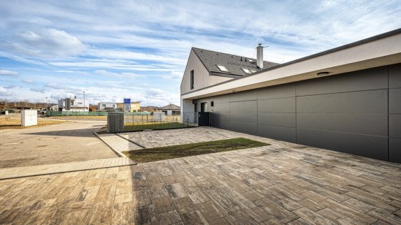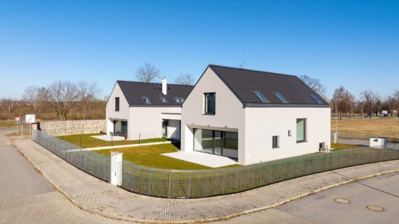 Architektonický výraz i materiálové pojetí navržených objektů je moderní s důrazem na kontrast čisté fasády s fasádou z fasádních obkladových desek.
