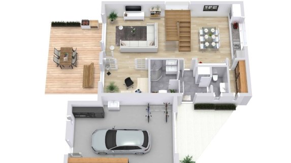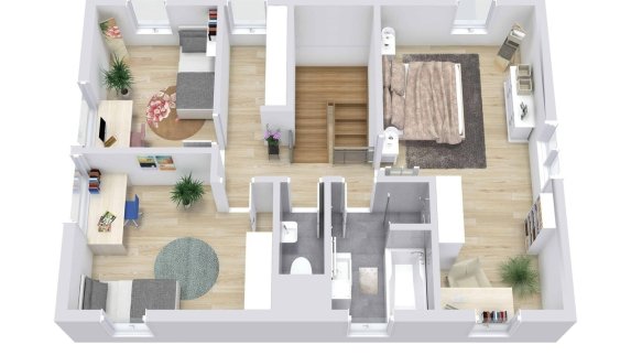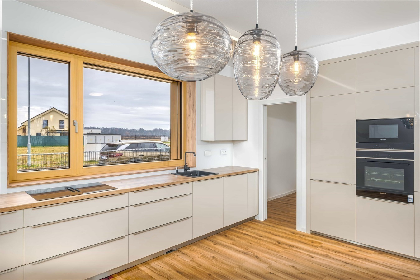 Luxusní kuchyň včetně spotřebičů, centrální vysavač, designové osvětlení v ceně domu! Okamžitě k nastěhování!