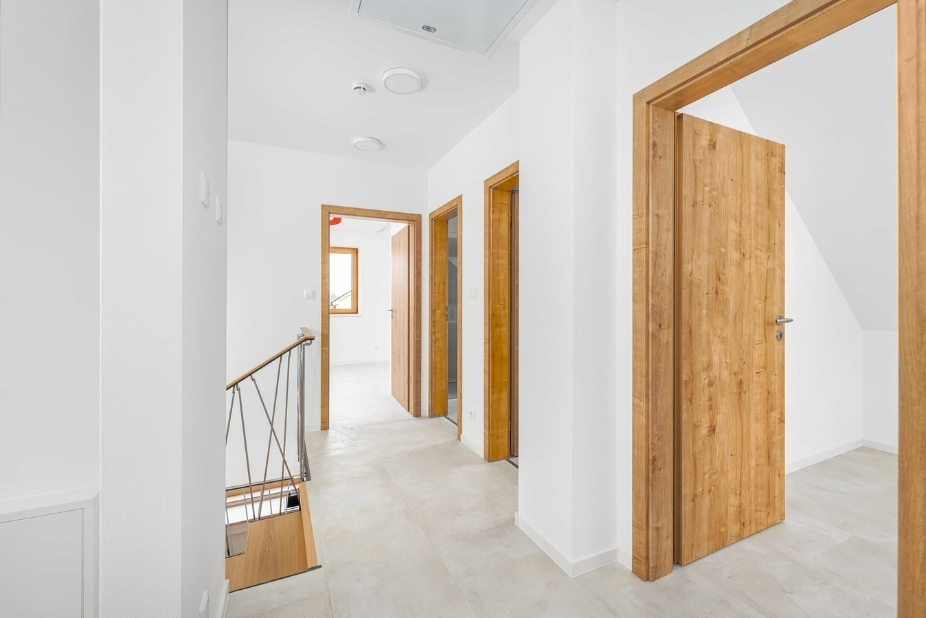 Kvalitu použitých materiálů podtrhují dřevohliníková okna a dveře. Prvky zámečnické z žárově zinkované oceli mají finální povrchovou úpravu v odstínech RAL a pro prvky klempířské bude použitý hliníkový plech.