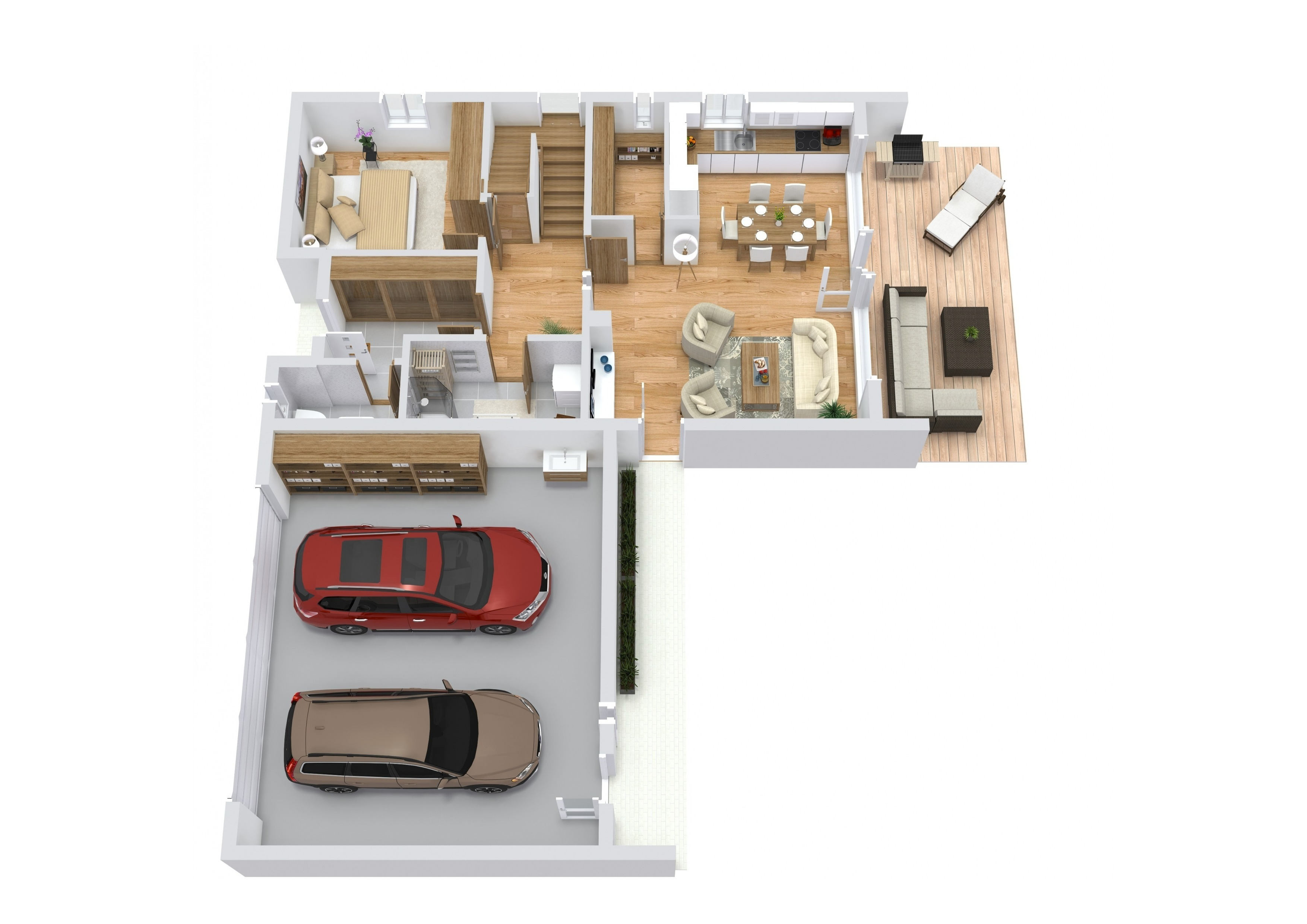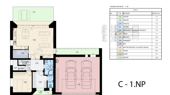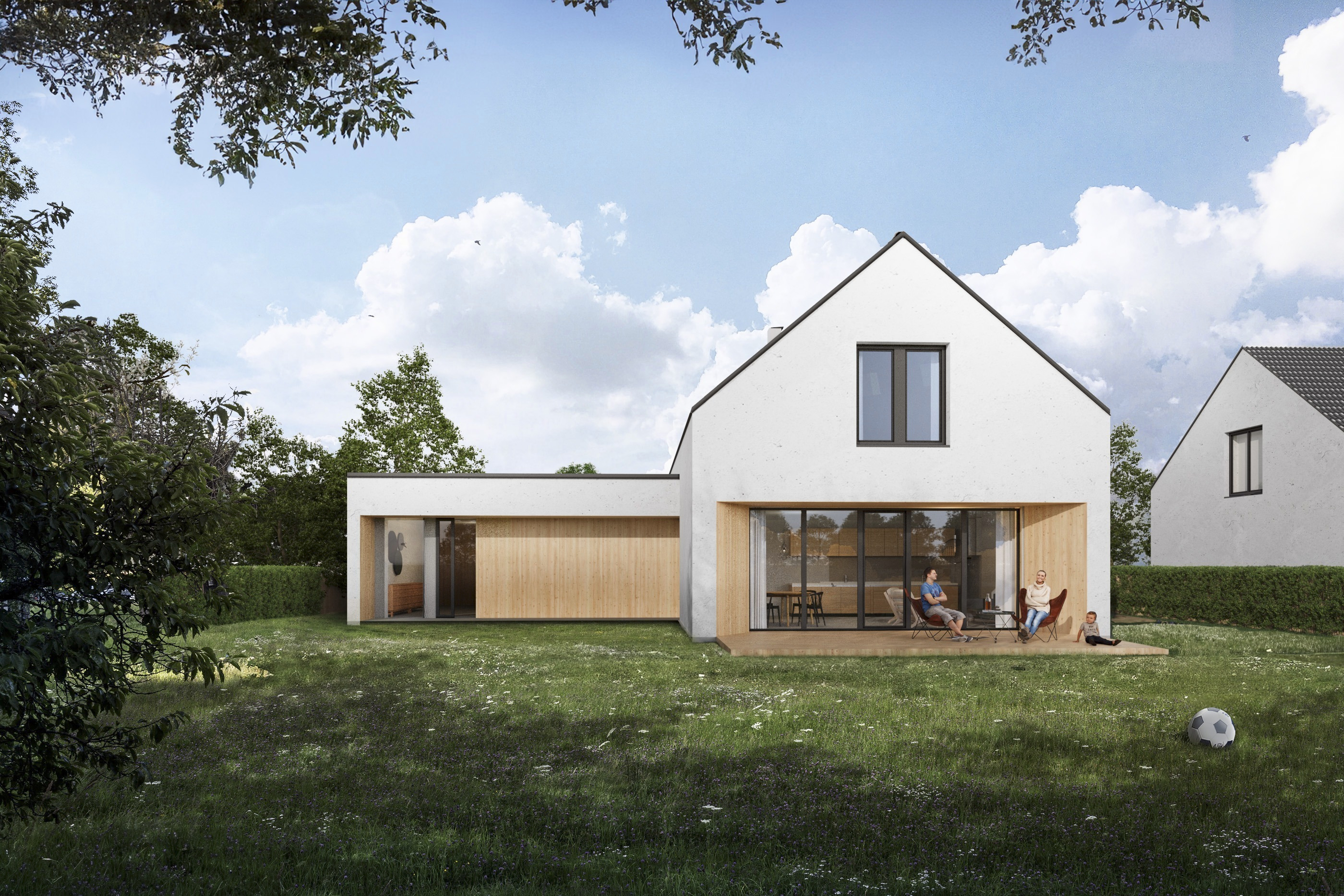 Kvalitu použitých materiálů podtrhují dřevohliníková okna a dveře. Prvky zámečnické z žárově zinkované oceli mají finální povrchovou úpravu v odstínech RAL a pro prvky klempířské bude použitý hliníkový plech.