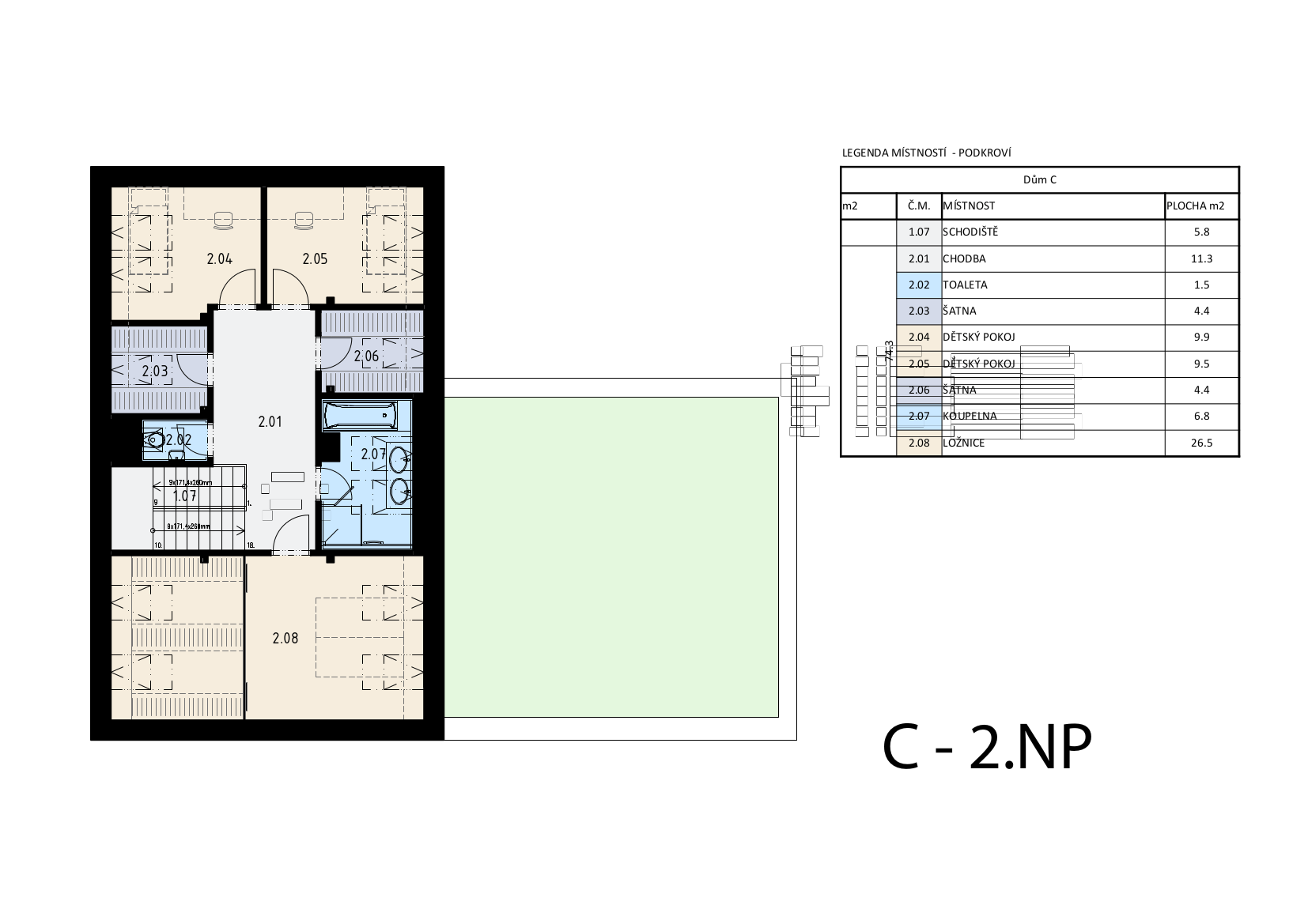 Objekty jsou navržené z tradičních materiálů a konstrukčně jsou řešené tradičním způsobem s využitím standardních povrchových úprav.