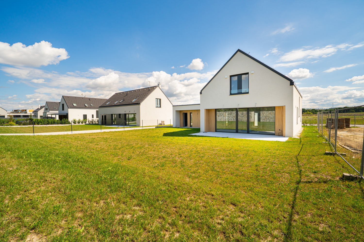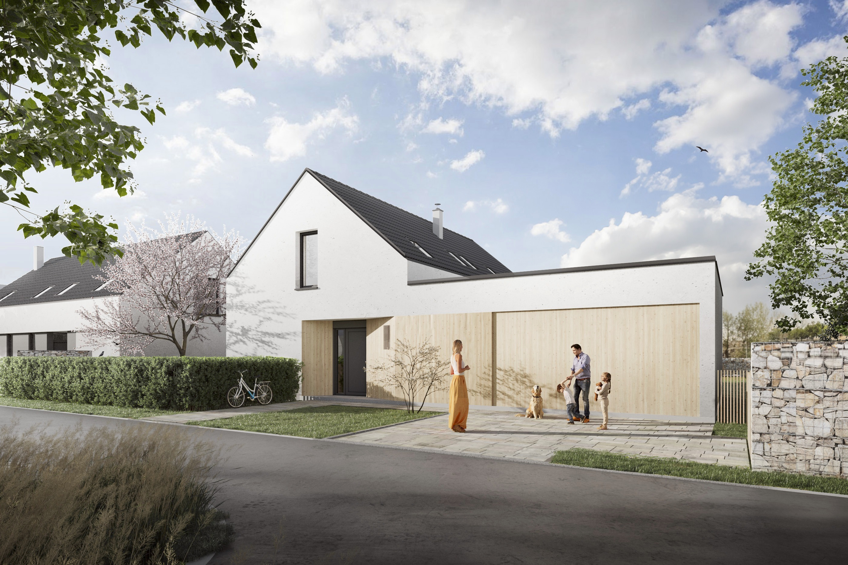 Architektonický výraz i materiálové pojetí navržených objektů je moderní s důrazem na kontrast čisté fasády s fasádou z fasádních obkladových desek.
