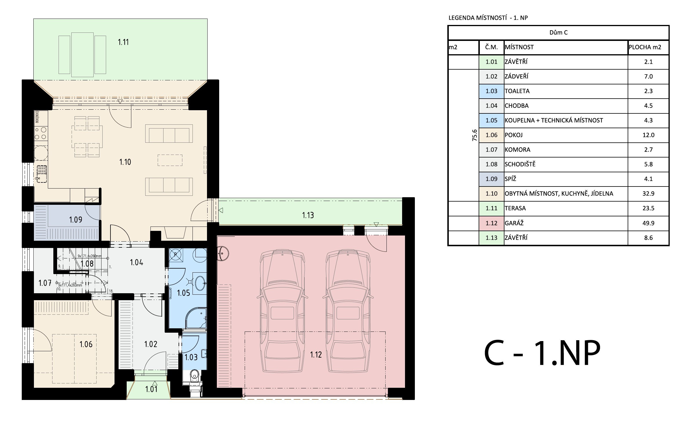 Kvalitu použitých materiálů podtrhují dřevohliníková okna a dveře. Prvky zámečnické z žárově zinkované oceli mají finální povrchovou úpravu v odstínech RAL a pro prvky klempířské bude použitý hliníkový plech.