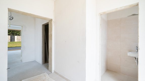 Svislé nosné konstrukce jsou z cihlových bloků 24 Porotherm Profi se zateplením ETICS s jádrem z EPS. Sokly a základy jsou zateplené systémem XPS. Stropní konstrukce jsou řešené železobetonovou stropní deskou tl. 200mm. Jako zdící prvky- pro dělící konstrukce jsou použité keramické cihlové bloky 11,5 Profi . Omítka je silikonová se silikonovým nátěrem. Sedlová část střechy je pokryta betonovou taškovou krytinou, plochá část střechy mechanicky kotvenou fóliovou hydroizolací.