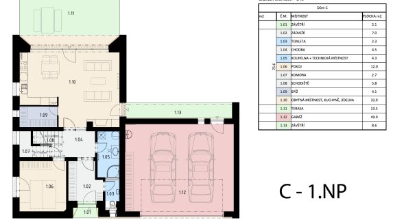 Objekty jsou z hlediska energetického posouzení navržené ve třídě "B - velmi úsporná". Spolu s vytápěním tepelnými čerpadlem a přípravou pro krbová kamna je zajištěn vysoký uživatelský komfort, který je podpořen podlahovým vytápěním obytných ploch.